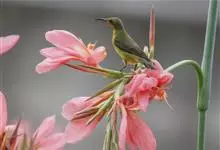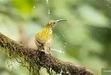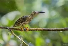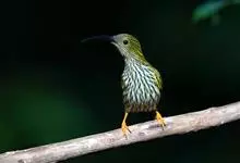 纹背捕蛛鸟:为太阳鸟科捕蛛鸟属的鸟类。是太阳鸟科中体型较大的一种,体重25-45克,体长160-210毫米。嘴粗长而尖且向下弯曲。上体橄榄黄色具黑色中央斑纹。下体淡黄白色满布黑色纵纹,尾具黑色次端斑。…全部>>