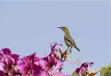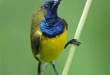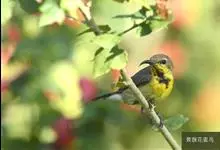 黄腹花蜜鸟是雀形目太阳鸟科花蜜鸟属鸟类。体型较小、喙略短而弯、腹部黄色。雄鸟繁殖季节颏及胸黑紫色并泛金属光泽,具有绯红色及灰色胸带,将上腹部黑色斑与前胸隔开,肩斑为橙黄色丝质羽,上体橄榄绿色,…全部>>