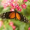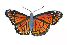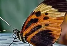 黑脉金斑蝶:翅阔8.6-12.4厘米。雄蝶较雌蝶为大。成年蝶颜色鲜艳,翅膀上有显眼的橙色及黑色斑纹,周围是宽阔的黑色边框,布有许多白色斑点。这种引人注目的着色是对捕食者的视觉警告,表示这个物种有毒;…全部>>
