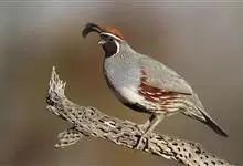 雉鹑:是雉科雉鹑属二种鸟类红喉雉鹑和黄喉雉鹑的统称。体长30-54厘米。上体大都褐色,头顶与两侧深灰,头顶与枕羽中央有黑褐色纵纹。飞羽暗褐色,羽缘具白色和棕色端斑。中央一对尾羽灰褐色具白色端斑,…全部>>