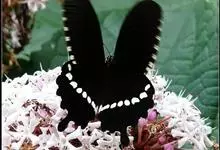 玉带凤蝶是鳞翅目凤蝶科凤蝶属昆虫,又称白带凤蝶、黑凤蝶、缟凤蝶、梁山伯凤蝶。雄蝶前翅外缘、后翅中央有7个大型黄白斑,排列成带。老熟幼虫深绿色,头部黄褐色,后胸前缘有1条齿状的黑色线状横纹,…全部>>