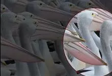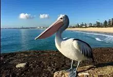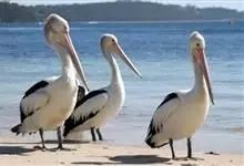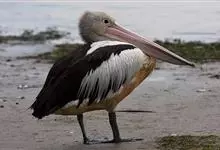 澳大利亚鹈鹕是一种大型涉禽,体重达13千克。生活于沿海及河川、湖泊等处。飞行力强而悠逸,常群飞群栖,极善于游泳,但不会潜水。游泳时张口捕鱼,将捕得的鱼兜入喉囊内。有时结群,排成长线,…全部>>