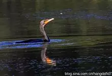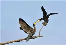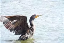 普通鸬鹚是属于鲣鸟目鸬鹚科鸬鹚属鸟类,又名水老鸦、鱼鹰、乌鬼、黑鱼郎等。体长720—900毫米,雌雄同型。通体黑色,有绿褐色金属光泽;喙厚重,喙基和喉囊橙黄色,脸颊及喉白色;夏羽颈及头饰具白色丝状羽,…全部>>
