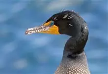 海鸬鹚:俗名乌鹈。典型的海上鸬鹚。体长约70厘米,体羽黑色具光泽。脸红色,与红脸鸬鹚甚似,但繁殖期冠羽较稀疏而松软,脸部红色不及额部但脸颊红色较多,幼鸟及非繁殖期的鸟脸粉灰,体型略小。虹膜蓝色;嘴黄…全部>>