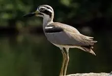 石鸻,是石鸻科、石鸻属的中型涉禽,体长40-45厘米。嘴粗厚、尖端黑色,基部黄色。脚长而粗、黄色,3趾,后趾缺失。上体淡沙灰褐色具黑褐色纵纹,前额和眼先白色。眼特别大、黄色,其外有一窄的黑圈,…全部>>