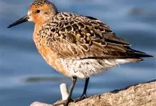 红腹滨鹬,是鹬科、滨鹬属的小型涉禽,体长23-25厘米,嘴较短而直、黑色,脚亦甚短、绿色。体较粗胖。夏季上体灰褐色具黑色中央纹,背具棕栗色和白色斑纹和羽缘,头侧和整个下体栗红色。冬季棕红色消失,…全部>>