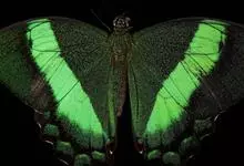 碧翠凤蝶,Papilio bianor Cramer,凤蝶科凤蝶属的一个物种。形态 成虫:翅展90—135 mm。体、翅黑色,满布翠绿色鳞片,在脉纹间更集中,已表现出翠绿带。…全部>>