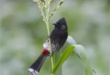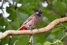 黑喉红臀鹎是雀形目鹎科鹎属鸟类,别称有黑头公、红臀鹎。头顶黑色具光泽;后颈、肩和背暗褐具灰色狭缘;腰羽几纯暗褐,尾上覆羽近白色,羽端浅灰褐色;尾羽褐黑,中央尾羽具狭窄的白色端斑,…全部>>