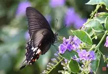 蓝凤蝶,Papilio protenor Cramer,凤蝶科凤蝶属的一种昆虫。翅展95~120mm。翅黑色,有靛蓝色天鹅绒光泽。雄蝶后翅正面前缘有黄白色斑纹,…全部>>