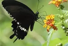 玉带凤蝶是鳞翅目凤蝶科凤蝶属昆虫,又称白带凤蝶、黑凤蝶、缟凤蝶、梁山伯凤蝶。雄蝶前翅外缘、后翅中央有7个大型黄白斑,排列成带。老熟幼虫深绿色,头部黄褐色,后胸前缘有1条齿状的黑色线状横纹,…全部>>