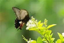 柑橘凤蝶是鳞翅目凤蝶科凤蝶属昆虫,又称柑橘黄凤蝶、花椒凤蝶、燕凤蝶。中型凤蝶。翅底色黑褐色,翅脉黑色,各翅室内具长短不一的黄白色斑;前翅中室具4条近乎平行的黄色线纹,后翅臀区具一枚橘红色的圆斑,…全部>>