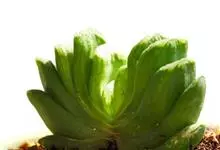 绿玉扇是芦荟科十二卷属多年生常绿多肉植物。无茎,株高5~8厘米;肉质叶左右排成两列呈扇形,叶片直立,稍向内弯,表面略显粗糙,绿色至暗绿褐色,新叶的截面部分透明,呈灰白色。总状花序,花细筒状,白色,…全部>>