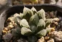 白银寿Haworthia emelyae var.emelyae Poelln.,中文惯称白银寿,是小型多肉植物,原产于南非开普省。肉质叶呈莲座状排列,叶色深绿或红褐色,顶端二角形,稍凸起,透明,…全部>>