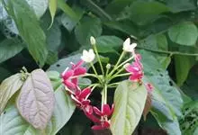 使君子 Jongkind)是使君子科、使君子属攀援灌木,叶对生,椭圆形,两面均被灰白色柔毛。穗状花序,倒挂下垂。花期夏秋。果有五棱,熟时黑色,种子白色。分布于印度、缅甸、菲律宾和中国。喜温润,深根性,…全部>>