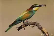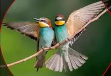 栗喉蜂虎是蜂虎科蜂虎属的鸟类。有热带鸟类羽毛艳丽的特征:喉部是栗红色的,黑色的过眼纹,翅膀和背部是绿色的,尾翼是蓝色的,飞行时翅膀下面的羽毛是橙黄色的,在阳光的照射下,它们全身闪烁着金属般的艳丽光泽,…全部>>