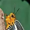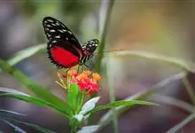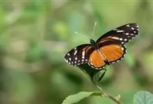 黑脉金斑蝶:翅阔8.6-12.4厘米。雄蝶较雌蝶为大。成年蝶颜色鲜艳,翅膀上有显眼的橙色及黑色斑纹,周围是宽阔的黑色边框,布有许多白色斑点。这种引人注目的着色是对捕食者的视觉警告,表示这个物种有毒;…全部>>