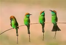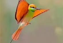 绿喉蜂虎是佛法僧目、蜂虎科的小型鸟类,共有9个亚种。身长22-25厘米,翼展29-30厘米,体重15-20克。喉绿色,额部、头顶至上背为锈红色,其余上体均为亮绿色。中央尾羽延长且端段狭细,…全部>>