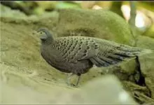 灰孔雀雉:雄鸟体长50-67厘米,体重456-710克;雌鸟体长33-52厘米,体重460-500克。雄鸟全身羽毛黑褐色,…全部>>