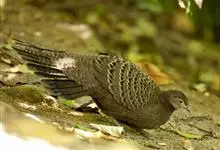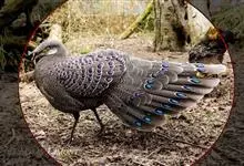 灰孔雀雉:雄鸟体长50-67厘米,体重456-710克;雌鸟体长33-52厘米,体重460-500克。雄鸟全身羽毛黑褐色,…全部>>