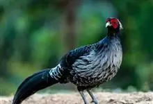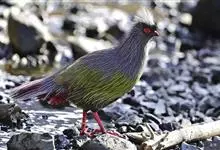 黑鹇是鸡形目雉科目鹇属鸟类,又称鸬雉、黑鸡。体型中等。雄鸟上体黑褐色,背羽具黑紫色金属光泽;头顶具黑羽冠;脸部裸皮呈红色,散生稀疏黑色纤羽;尾长而侧扁,中央两对尾羽红褐色,…全部>>