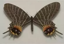 不丹褐凤蝶Bhutanitisludlowi Gabriel 是鳞翅目凤蝶科的昆虫。 稀少而美丽,是不丹的国蝶,被称为“高山美人”。是褐凤蝶属中最美丽大型者。四翅狭长,背景色为褐色,前翅有七条黄白色…全部>>
