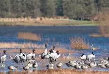 加拿大黑雁共有11个亚种,为鸭科黑雁属的鸟类。中等体型,为典型的冷水性海洋鸟,耐严寒,喜栖于海湾、海港及河口等地。飞行时有时呈斜线飞行,有时呈“V”字形,很不规则。主要以青草或水生植物的嫩芽、叶、茎…全部>>