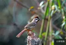 白颊噪鹛是雀形目噪鹛科噪鹛属鸟类,又称土画眉、小画眉、小噪鹃。成鸟额至头顶栗褐色,长眉纹、眼先和颊纹棕白色,眼后至耳羽深褐色,…全部>>