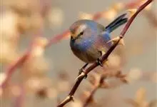 凤头雀莺:小型鸟类。体长9-10厘米,雄鸟呈毛茸茸的紫色和绛紫色,顶冠淡紫灰色,额及凤头白色,尾全蓝。雌鸟喉及上胸白,至臀部渐变成淡紫色,耳羽灰,…全部>>