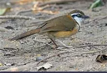 黑领噪鹛是雀形目画眉科噪鹛属鸟类,又名领笑鸫。头顶和上体褐色;眼先和眉纹白色;脸部具黑白相间的纵纹;颈侧至胸前具显著的黑色宽带,形成一半领环,其后方的颈背向下至两胁皆为棕黄色,其余下体白色;尾褐色,…全部>>