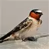 家麻雀:共有13个亚种。是小型鸟类,体长14-16厘米。背栗红色具黑色纵纹,两侧具皮黄色纵纹;颏、喉和上胸黑色,脸颊白色,其余下体白色,翅上具白色带斑。雄鸟与树麻雀的区别在顶冠及尾上覆羽灰色,耳无黑…全部>>