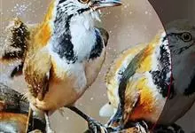大噪鹛:中型鸟类,体长32-36厘米。额至头顶黑褐色,背栗褐色满杂以白色斑点,斑点前缘或四周还围有黑色。初级覆羽、大覆羽和初级飞羽具白色端斑。尾特长,均具黑色亚端斑和白色端斑。颏、喉棕褐色,…全部>>