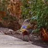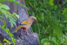 橙翅噪鹛:是噪鹛科、彩翼噪鹛属的中型鸟类,体长22-25厘米。头顶深葡萄灰色或沙褐色。上体灰橄榄褐色,外侧飞羽外翈蓝灰色、基部橙黄色,中央尾羽灰褐色,外侧尾羽外翈绿色而缘以橙黄色并具白色端斑。…全部>>