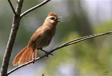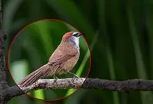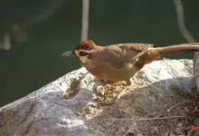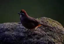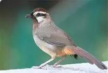 白颊噪鹛是雀形目噪鹛科噪鹛属鸟类,又称土画眉、小画眉、小噪鹃。成鸟额至头顶栗褐色,长眉纹、眼先和颊纹棕白色,眼后至耳羽深褐色,…全部>>