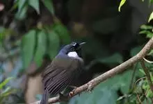 黑喉噪鹛是噪鹛属鸟类。体长24-29厘米,体重75-90克。雄鸟前额、眼先、眼周和眼后纹以及颊、须和喉黑色;黑色前额和蓝灰色头顶之间有道白色细斑;颈侧具椭圆形白斑,…全部>>