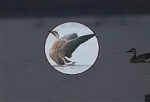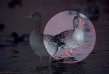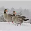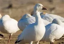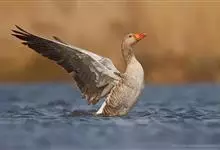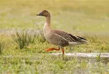 灰雁:体长70-90厘米,翼展147-182厘米,体重2.5-4千克,寿命17年。体大而肥胖。嘴、脚肉色,上体灰褐色,下体污白色,飞行时双翼拍打用力,振翅频率高。脖子较长。腿位于身体的中心支点,…全部>>