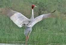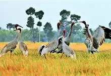赤颈鹤是大型涉禽,共分化为3个亚种。后趾小而高位,不能与前三趾对握,因此不能栖息在树上;全身羽毛大致呈浅灰色,成鸟颈部裸露红色的皮肤。初级飞羽和初级覆羽为黑色,白色而修长的内侧飞羽垂直的覆盖着尾部。…全部>>