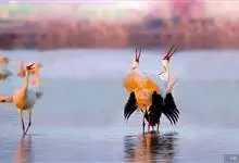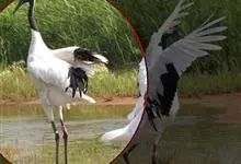 丹顶鹤:是鹤科、鹤属的一种大型涉禽,体长120-160厘米。颈、脚较长,通体大多白色,头顶鲜红色,喉和颈黑色,耳至头枕白色,脚黑色,站立时颈、尾部飞羽和脚黑色,头顶红色,…全部>>