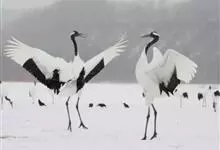 丹顶鹤:是鹤科、鹤属的一种大型涉禽,体长120-160厘米。颈、脚较长,通体大多白色,头顶鲜红色,喉和颈黑色,耳至头枕白色,脚黑色,站立时颈、尾部飞羽和脚黑色,头顶红色,…全部>>