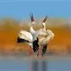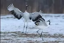 丹顶鹤:是鹤科、鹤属的一种大型涉禽,体长120-160厘米。颈、脚较长,通体大多白色,头顶鲜红色,喉和颈黑色,耳至头枕白色,脚黑色,站立时颈、尾部飞羽和脚黑色,头顶红色,…全部>>