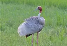 赤颈鹤是大型涉禽,共分化为3个亚种。后趾小而高位,不能与前三趾对握,因此不能栖息在树上;全身羽毛大致呈浅灰色,成鸟颈部裸露红色的皮肤。初级飞羽和初级覆羽为黑色,白色而修长的内侧飞羽垂直的覆盖着尾部。…全部>>