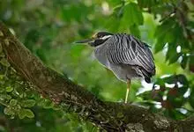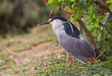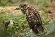 夜鹭是中型涉禽,体长46-60厘米。体较粗胖,颈较短;嘴尖细,微向下曲,黑色;胫裸出部分较少,脚和趾黄色;头顶至背黑绿色而具金属光泽;上体余部灰色;下体白色;枕部披有2-3枚长带状白色饰羽,下垂至背上,…全部>>
