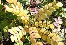 十大功劳 Fedde),小檗科十大功劳属常绿灌木植物。叶子较大且较多,呈椭圆形,绿色,表面光滑无毛,叶柄较长;花朵较小,呈多边形,黄色,花瓣对称分布,表面有绒毛;果实呈圆形,褐色,…全部>>