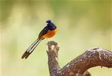 蓝额红尾鸲体长14-16厘米。雄鸟夏羽前额和一短眉纹辉蓝色,头顶、头侧、后颈、颈侧、背、肩、两翅小覆羽和中覆羽以及颏、喉和上胸概为黑色具蓝色金属光泽。主要以甲虫、蝗虫、毛虫、蚂蚁、鳞翅目幼虫等昆虫为食,…全部>>
