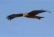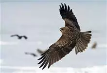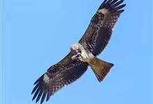黑鸢:是鹰科、鸢属的一种中型猛禽,共有5个亚种。体长54-69厘米。上体暗褐色,下体棕褐色,均具黑褐色羽干纹,尾较长,呈叉状,具宽度相等的黑色和褐色相间排列的横斑;飞翔时翼下左右各有一块大的白斑。…全部>>