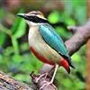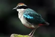 绿胸八色鸫:是雀形目八色鸫科的鸟类,共有12个亚种。体长为16-18厘米,体重65-69克。体型圆胖,尾短,腿长。头黑,上体绿色,两翼深色而具白色斑纹,头顶至后枕深褐,胸及腹部苹果绿,臀亮红。…全部>>