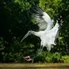 白鹳,是鹳形目鹳科鹳属鸟类。白鹳曾确定为3个亚种:指名亚种、中亚亚种和东方亚种。其体长约111厘米。嘴形直、粗厚而侧扁;体羽除飞羽黑色具铜绿色金属光泽外,余部均为白色;眼周裸区、脚、趾红色,嘴黑色。…全部>>