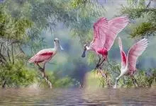 琵鹭,为6种长腿涉禽的统称。主要以虾、蟹、水生昆虫、昆虫幼虫、蠕虫、甲壳类、软体动物、蛙、蝌蚪、蜥蜴、小鱼等小型脊椎动物和无脊椎动物为食,偶尔也吃少量植物性食物。…全部>>