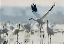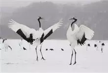 丹顶鹤:是鹤科、鹤属的一种大型涉禽,体长120-160厘米。颈、脚较长,通体大多白色,头顶鲜红色,喉和颈黑色,耳至头枕白色,脚黑色,站立时颈、尾部飞羽和脚黑色,头顶红色,…全部>>