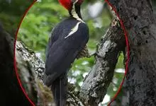 白腹黑啄木鸟,是啄木鸟科、黑啄木鸟属的中型鸟类,体长43-46厘米,头顶具长的红色羽冠,颚纹亦为红色,其余头、颈、胸和上体黑色,腰和腹白色,飞翔时白色腋羽和翅下覆羽亦明显可见。雌鸟头顶黑色,…全部>>