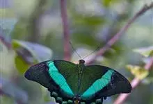 碧翠凤蝶,Papilio bianor Cramer,凤蝶科凤蝶属的一个物种。形态 成虫:翅展90—135 mm。体、翅黑色,满布翠绿色鳞片,在脉纹间更集中,已表现出翠绿带。…全部>>